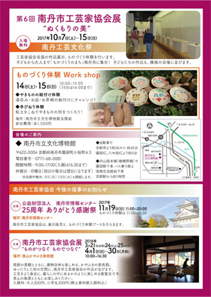 南丹市立文化博物館にて「第6回南丹市工芸家協会展」が開催されます。