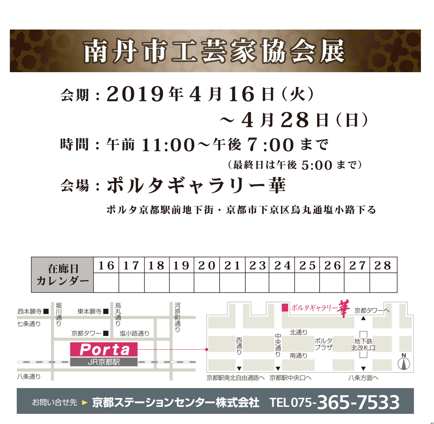 京都駅地下街のポルタギャラリー華にて「南丹市工芸家協会展」を開催します。