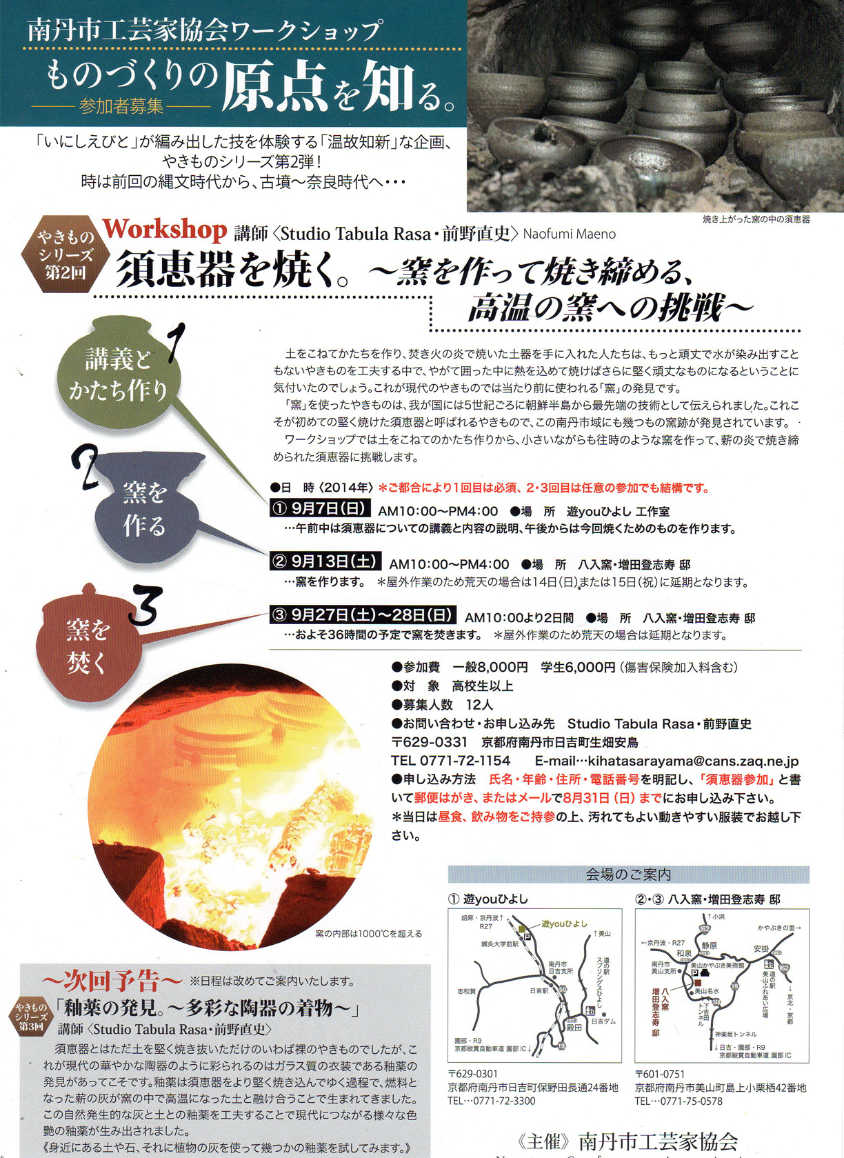 南丹市八木町の「わざどころPON」にて開催されます「醸す、なんたん〜ものづくりのまちへようこそ!南丹市の工芸〜」内におきまして南丹市工芸家協会展を開催いたします。